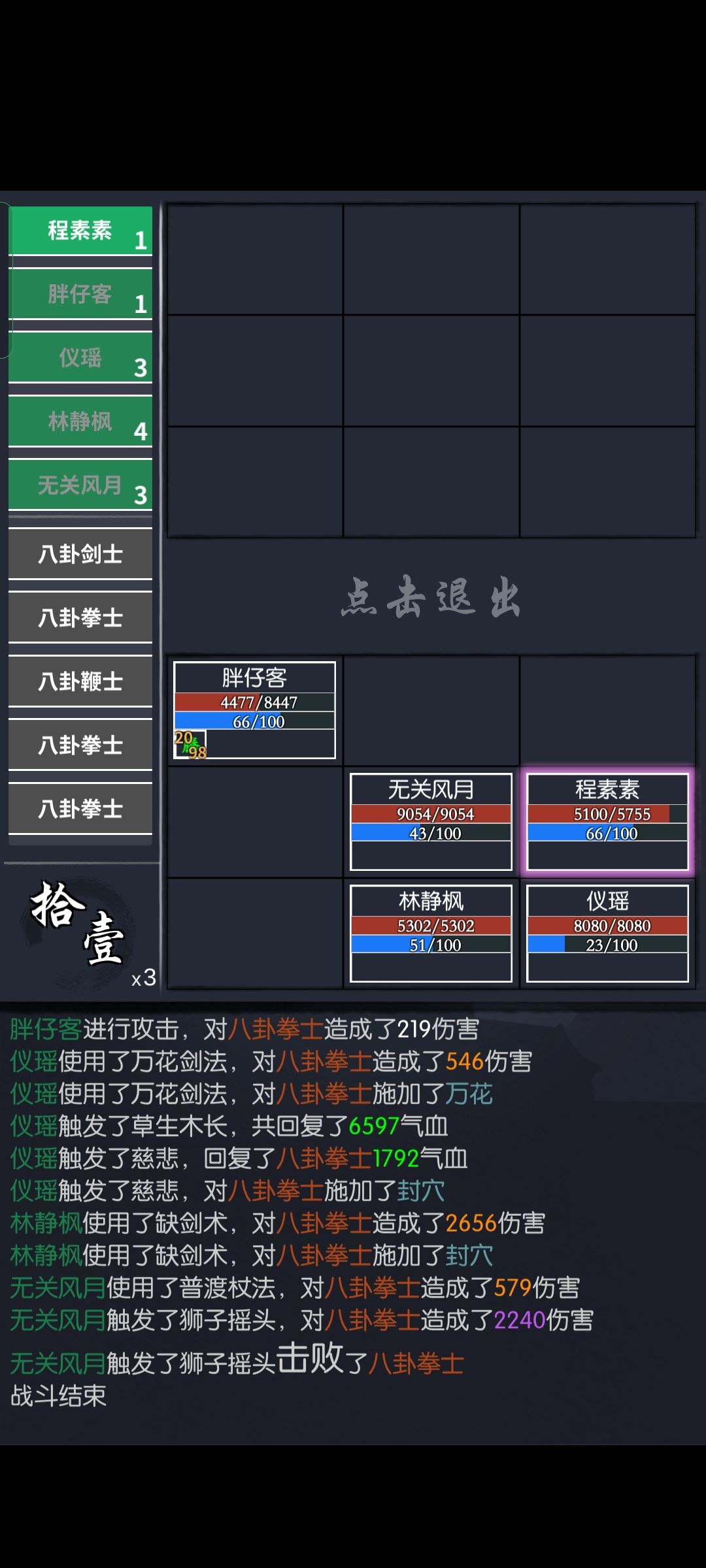 这关因为两个鞭子站一列用的狮子摇头,一般打小怪用慈悲刀法