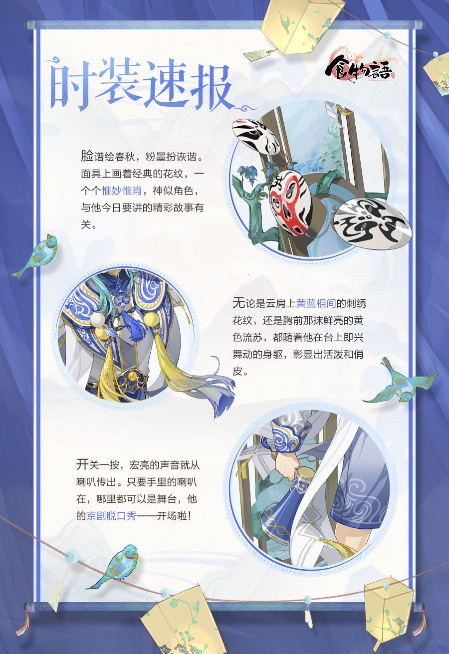 脸谱绘春秋,粉墨扮诙谐。面具上画着经典的花纹,一个个惟妙惟肖,神似角色,与他今日要讲的精彩故事有关。