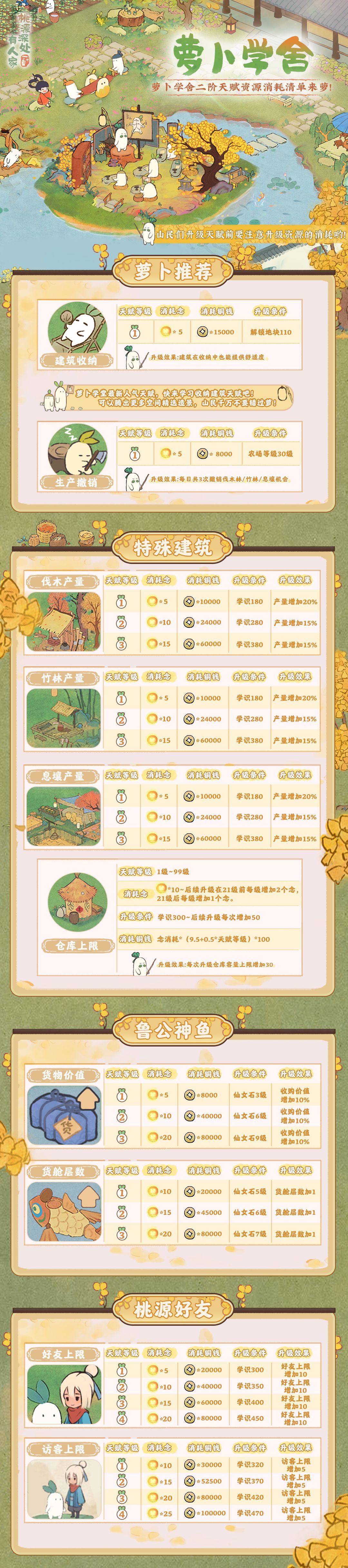 萝卜小课堂丨学舍二阶天赋消耗清单