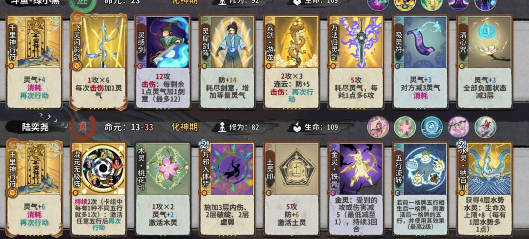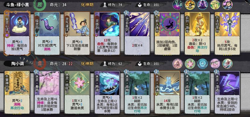 当我们处于先手的时候我们在自己的灵气不够杀人的时候可以选择3动吸灵气,在还是不够的情况下可以上两张放在3动4动,放一张的情况下要再放一张清心咒,然后6动打死,