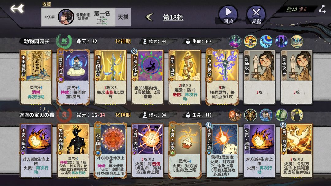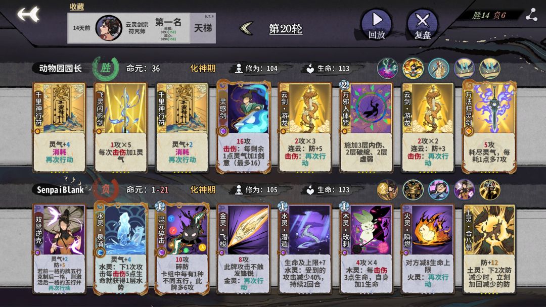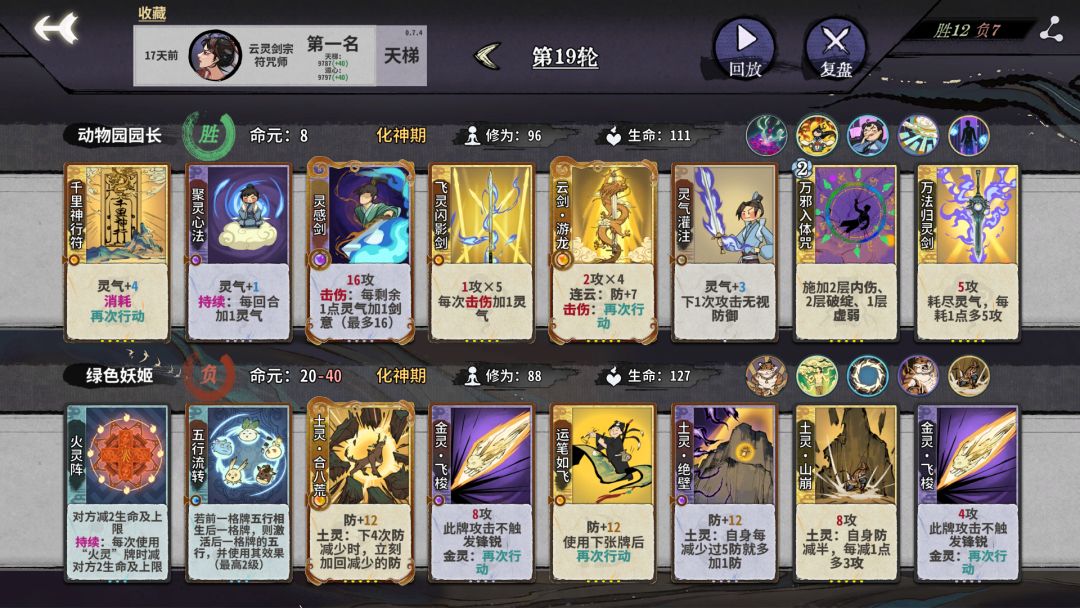 3.在第三轮开始就可以开始猛d,如果没凑齐剑意套排序就经量算一下在对面没防的时候几动打死,差伤害可以留伤害符,推荐奔雷符,有时候有奇效,不要在第三轮上本。