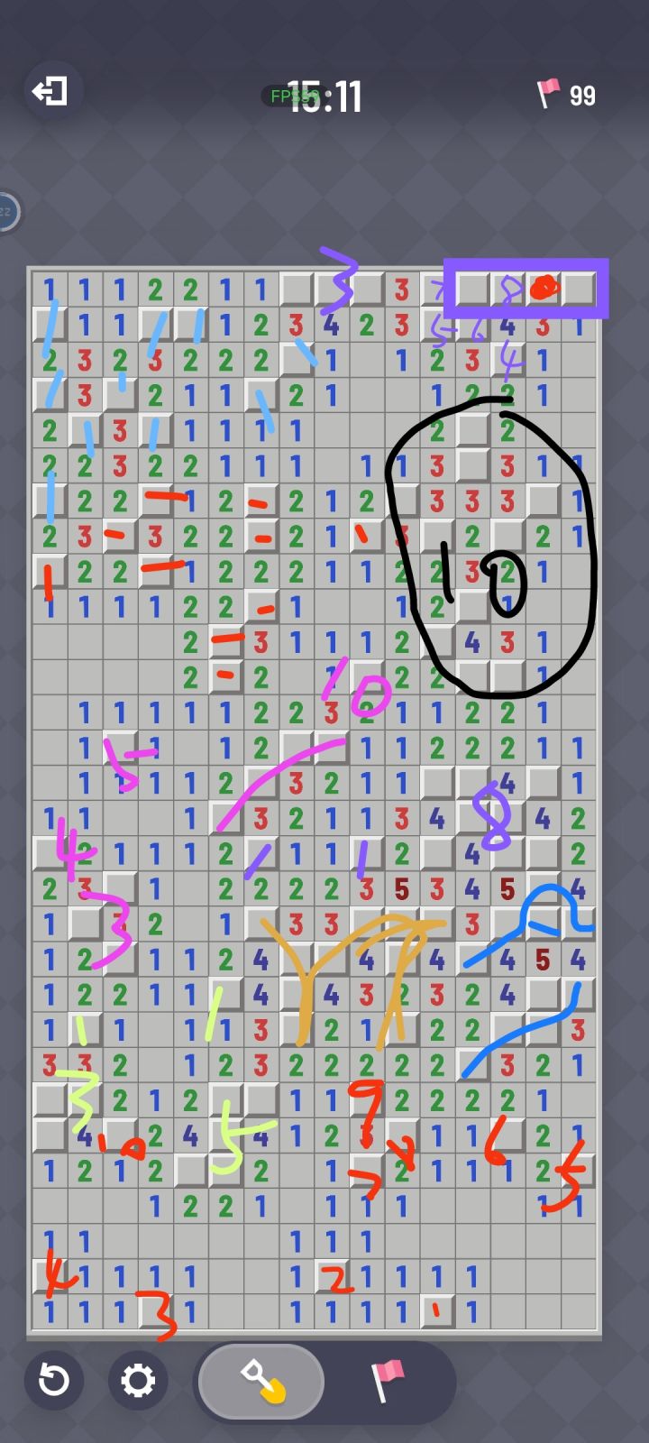 建议把长按触感拉到慢(手误,为了精准的点格子,插了个旗,就废了)