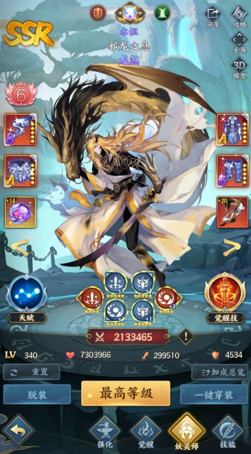 神格印记激活:可不激活,因为一般刚好凑够八个印记时候能激活龙语音神格,后续再激活龙煞的比起激活其他SSR性价比不高。