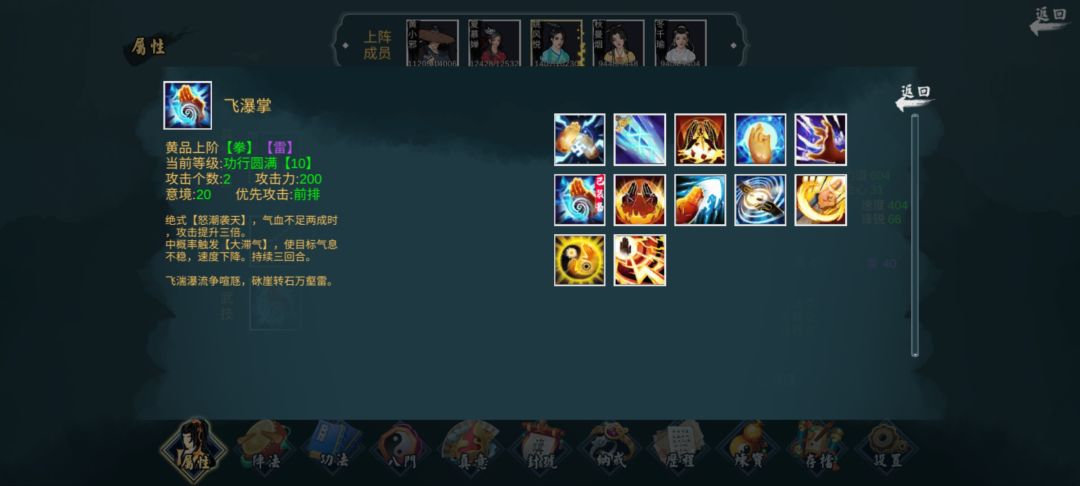 卡血到2成以下进入战斗,触发飞瀑掌3倍攻击。进图用心法回血之后仍然可以触发3倍攻击。