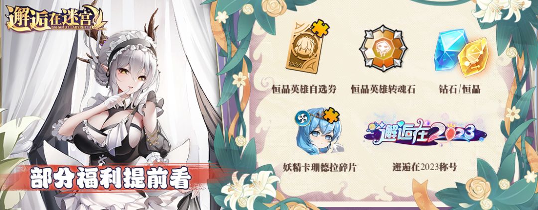 周年庆限时免费称号「邂逅在2023」、艾拉·神与夏亚大战外星章鱼主题皮肤、三星卷轴自选箱、赤玉、玩偶核心、完美魔纹等。