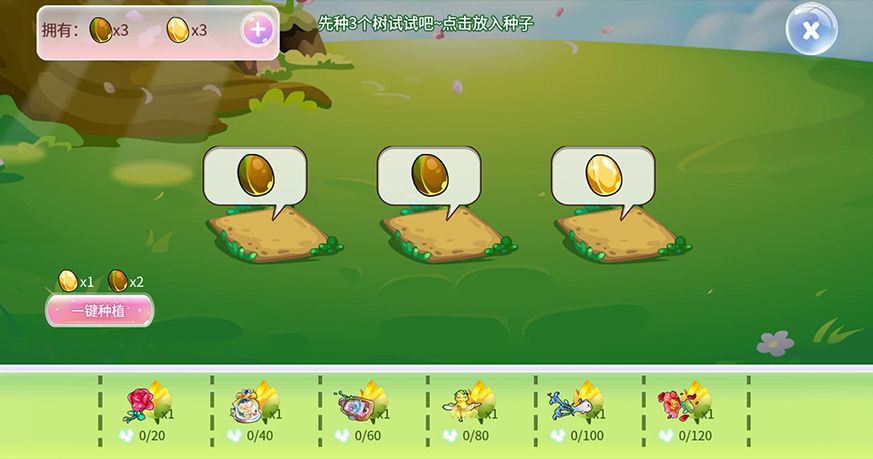 根据提示放入种子,并选择使用普通水壶或金水壶为种子浇水。