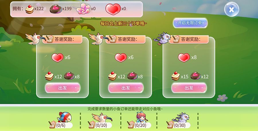 选择任意订单,点击出发,为对应小鱼送去甜蜜礼物~