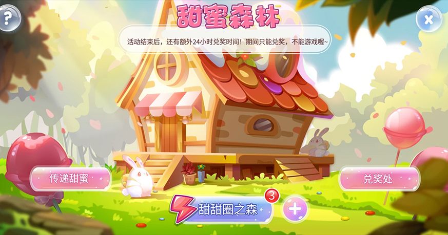 1、本活动分为三部分:甜甜圈之森、传递甜蜜、兑奖处;