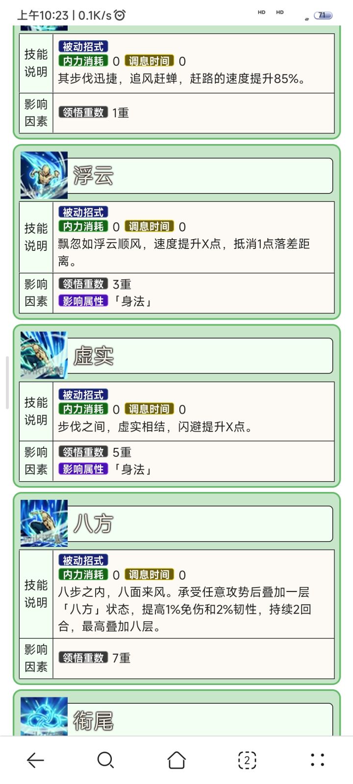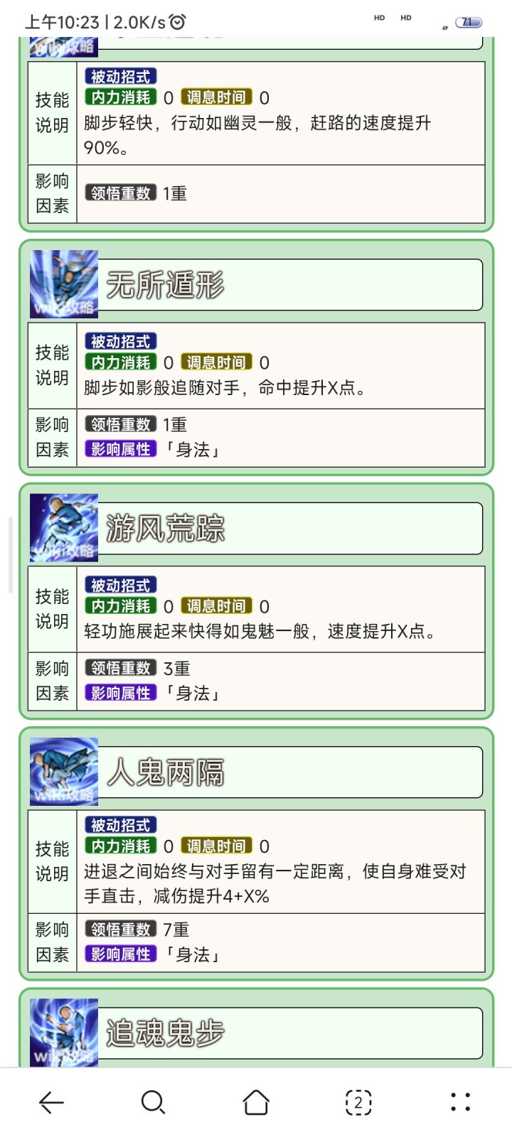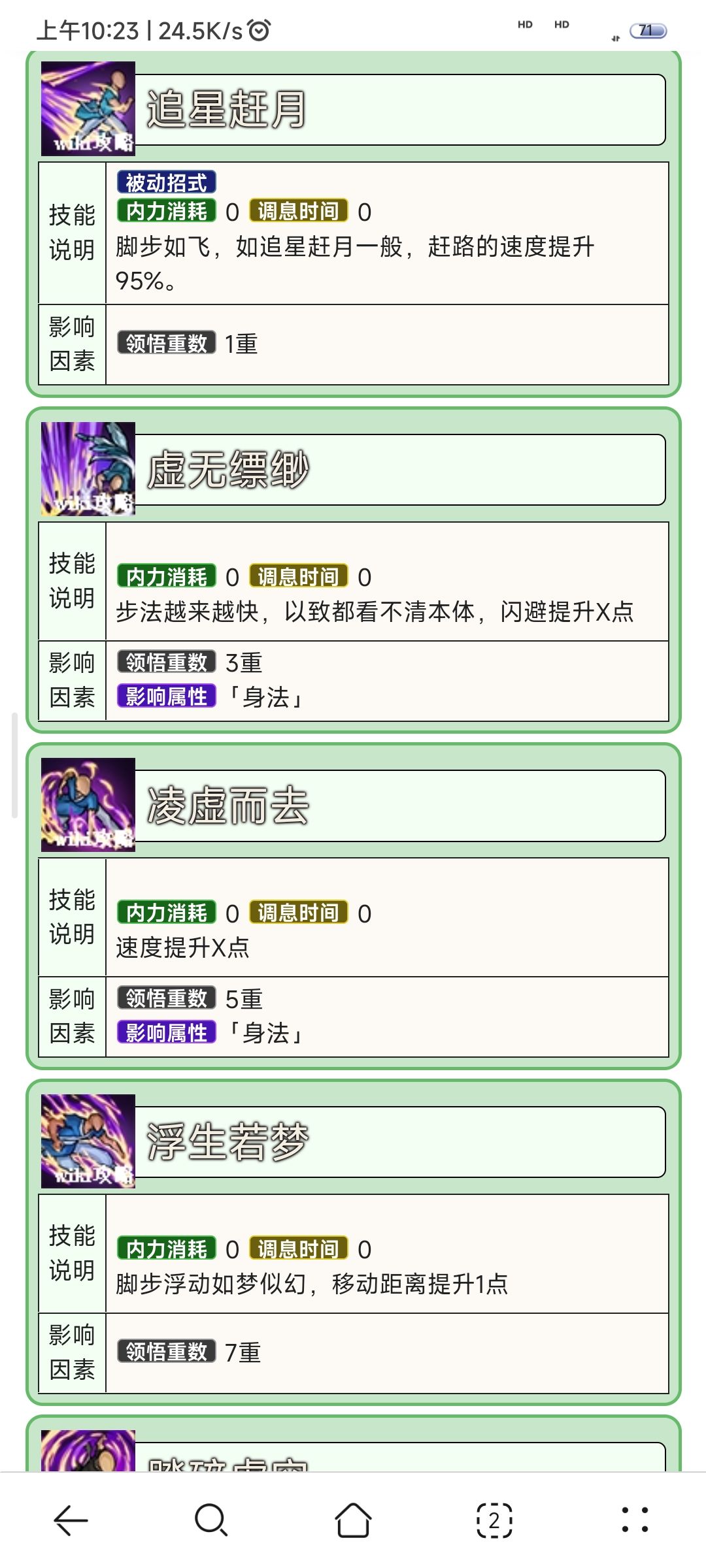 看看其他江湖武学的轻功技能,除了赶路都是通用的,其他主流江湖轻功的技能,就没有一个是没用的,或多或少都有增加那么一点属性