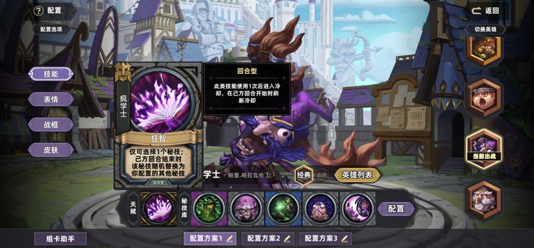 疯学士虽然只能带一个技能,还特别害怕霜袍的冰封技能,但是每回合一个大招,把把掏大炮就问你怕不怕。
