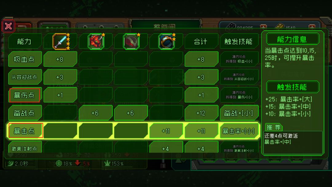 暴击输出流的核心技能点就是暴击点、暴伤点、吸血点,能够让先锋战士拥有更高的输出能力,挑战副本时,可以更快通关。