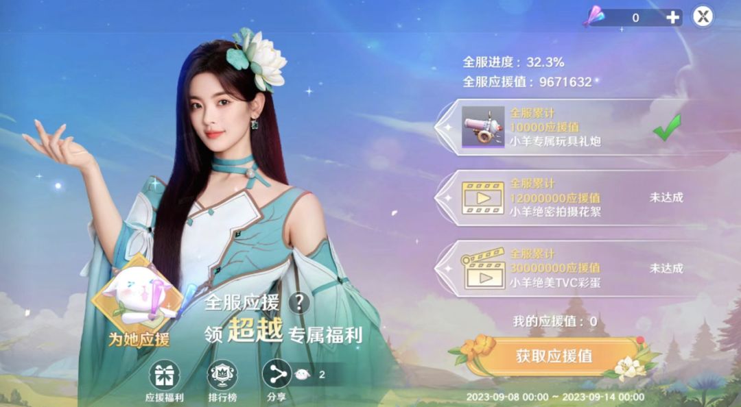 第三档:全服累计获得3000万应援值,解锁小羊绝美TVC彩蛋,开启隐藏结局