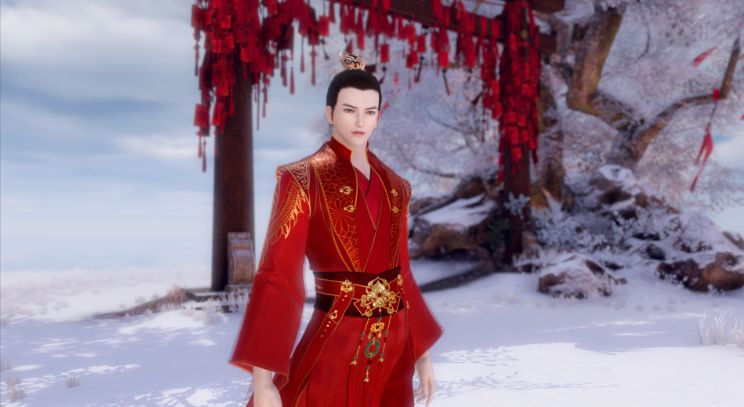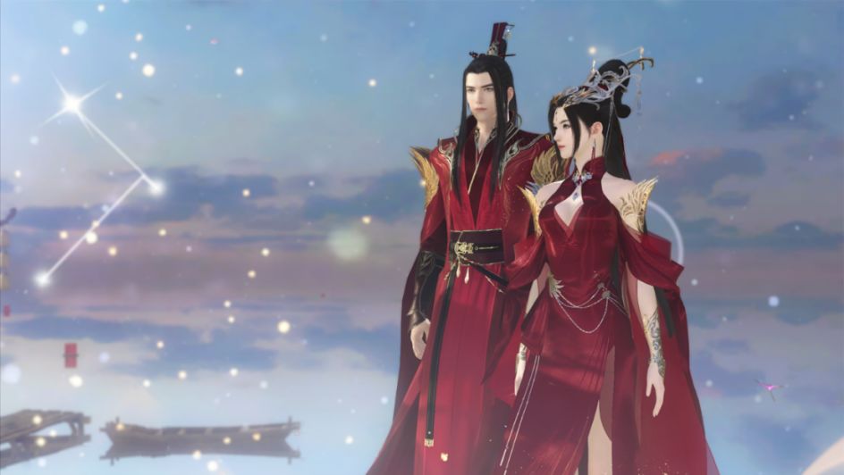 3、红鸾宵缎&红鸾霞帔:这套婚服手游官方没有展示,但是端游结婚时候,过流程的时候玩家会自动穿上这一套,并且还有2个小时的时装体验。当时端游的售价是268R。