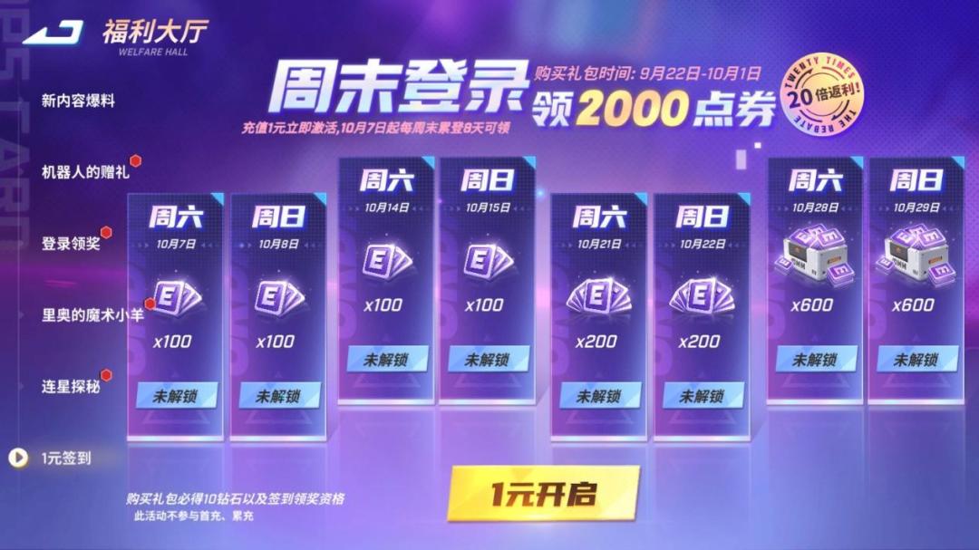 10月07日起,每周末累计登录八天可领2000点券!