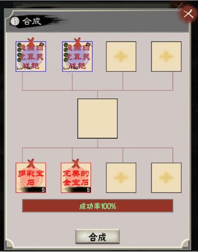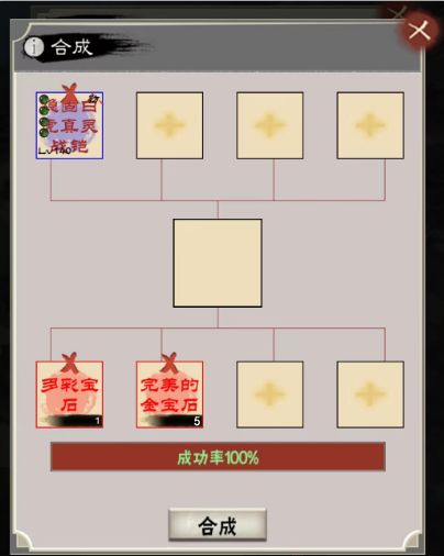 上面第一个放【主装备】,后面3个放想要的副属性的【同品质装备】,下面依次放2个【多彩宝石】和5个【橙色宝石】,合成后【主装备】的副属性随机从上面3个中生成一个。