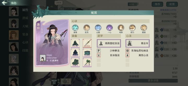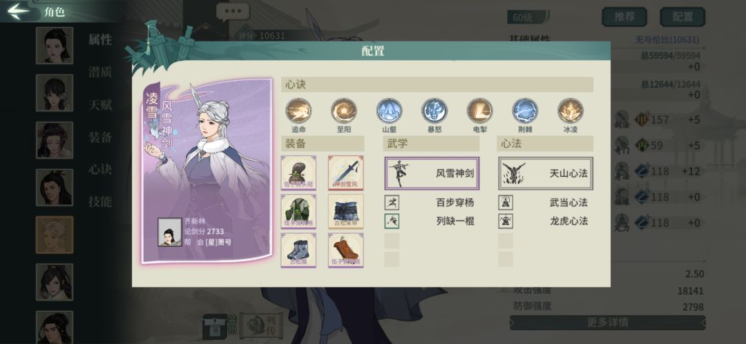 凌雪是替补,没什么好说的。但论剑的时候这几个侠客是萌新们用的最多的,所以经常被抢,1个凌雪替补就不够用了。新手有个30抽送绝的福利,可以在6选1。目前最有用的应该是妙真,但是要搭配至少2突的织女飞云梭。我当时懒得折腾穿的一身绿装就不发出来了,具体配置可以论坛搜。不想用掉这个福利的还可以到江湖商店买甲张月,甲张月用自身武学可以加控制概率,还可以减少2格内队友的受暴击伤害,带上负面穿透的心法也是个不错的替补。