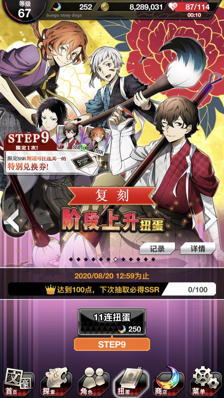 我已经不知道这是第几次在有中也的池子里沉船了,我是应该庆幸这个游戏有保底吗
