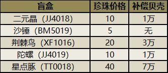 盲盒上线已经有一段时间了,原来盲盒是不分价格都统一赠送1万贝壳的,但从猎人开始对赠送的贝壳数量进行了调整,按每5珍珠=1万贝壳的比例赠送。猎人盲盒是10珍珠,所以赠送2万贝壳。之前的盲盒赠送的贝壳也都相应的进行了调整,星点豚盲盒价格是40珍珠,赠送8万贝壳。