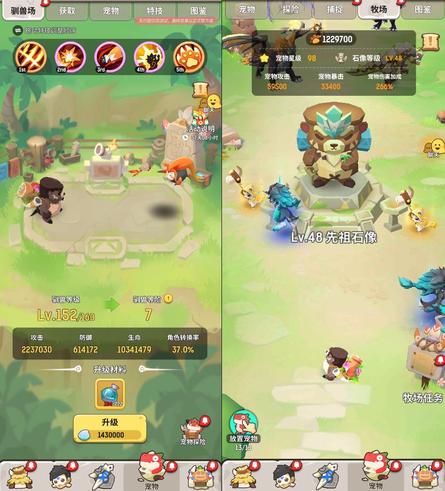 1.去除牧场与探索分页,整合为驯兽场分页。