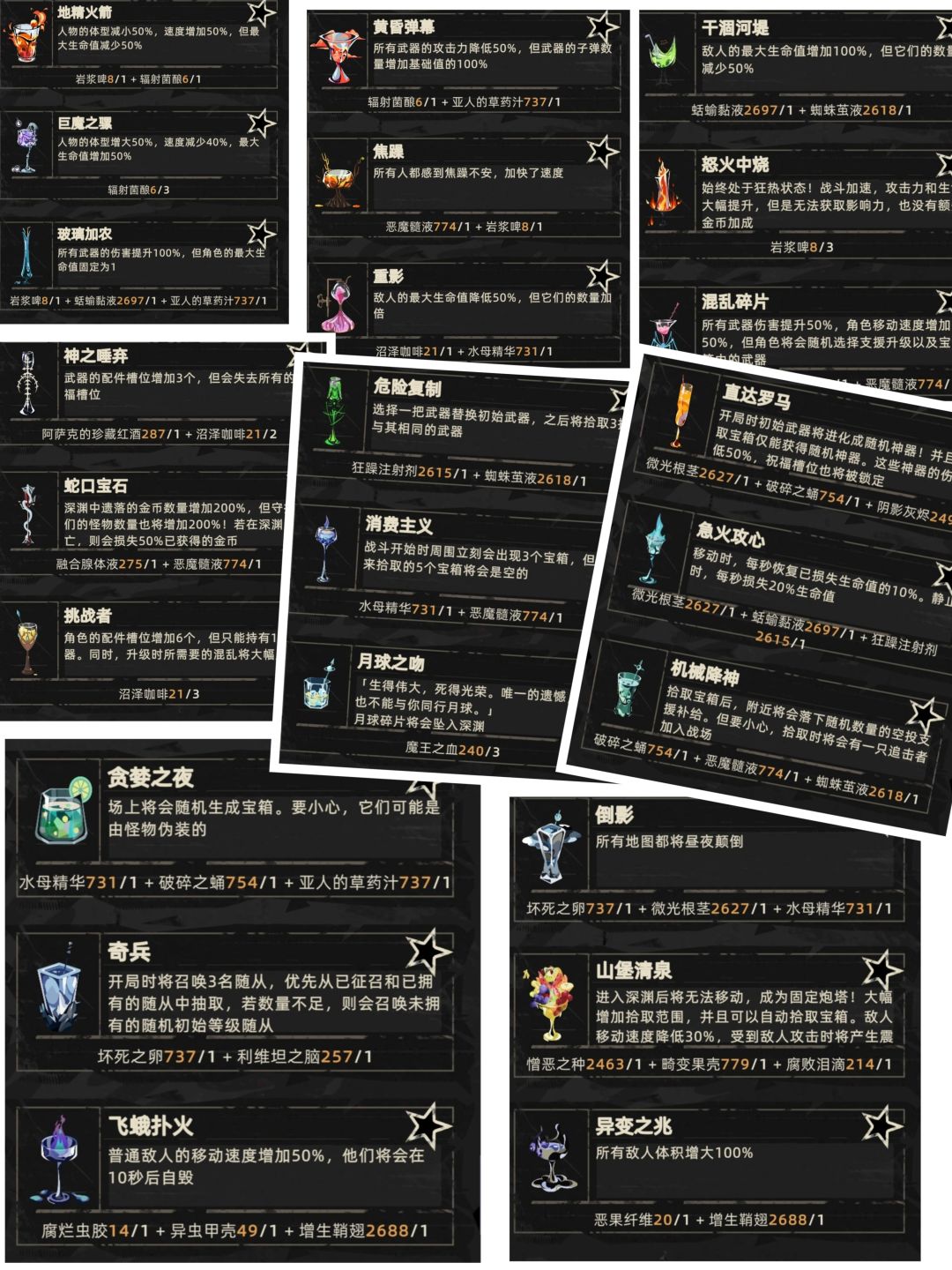 新手顺序观看,刷金板块请跳转至第2条,隐藏角色请跳转至第三条,饮品调配跳转至第七条,隐藏成就跳转至第八条,只想了解混乱空间模块请跳转至第九条。