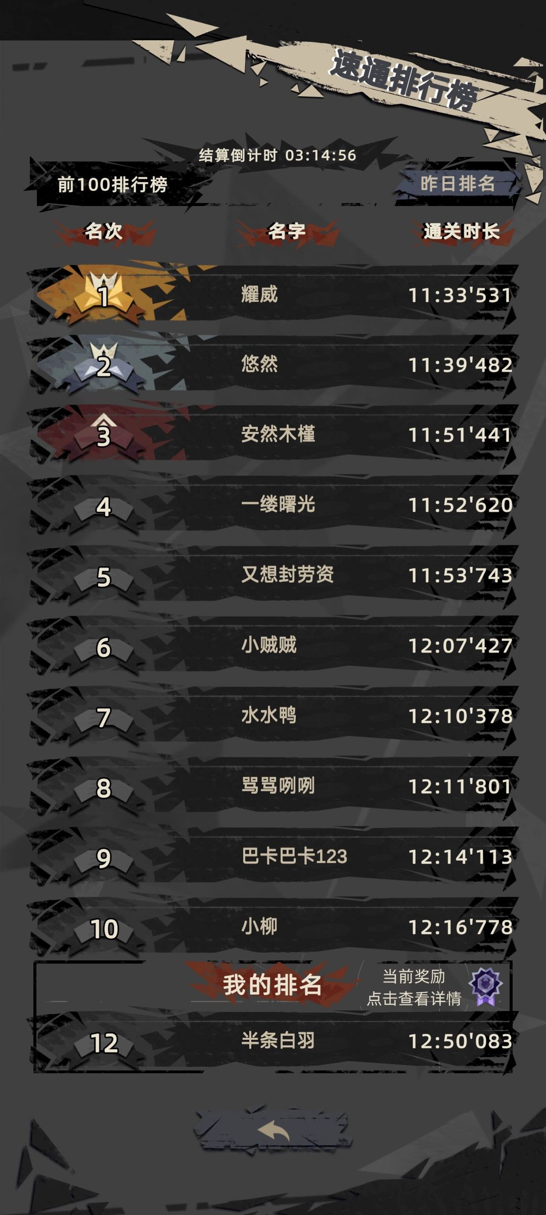 标准速通12名