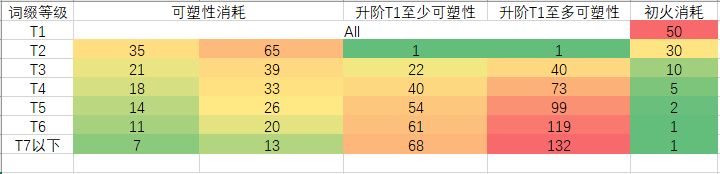2.T2升阶只消耗 35~65 可塑性(31火)