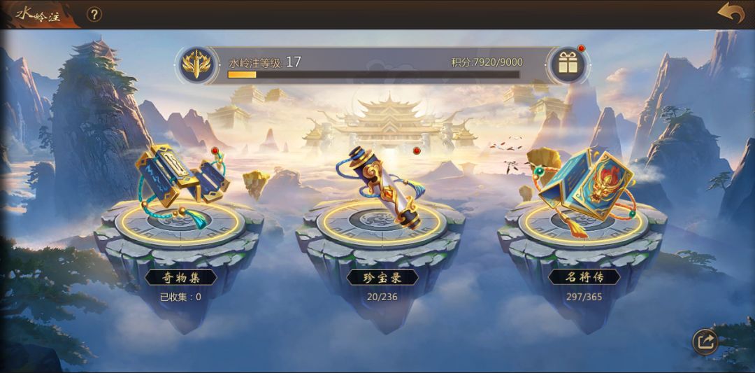 水岭注新增收集图鉴—名将传,收录天下英雄豪杰!
