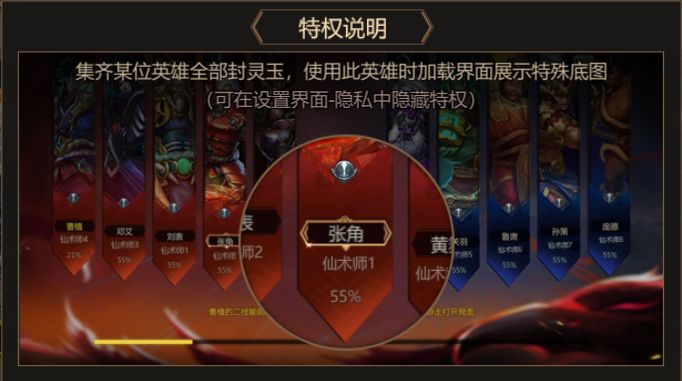 集齐英雄全部封灵玉后,可解锁对应英雄进入界面加载特权