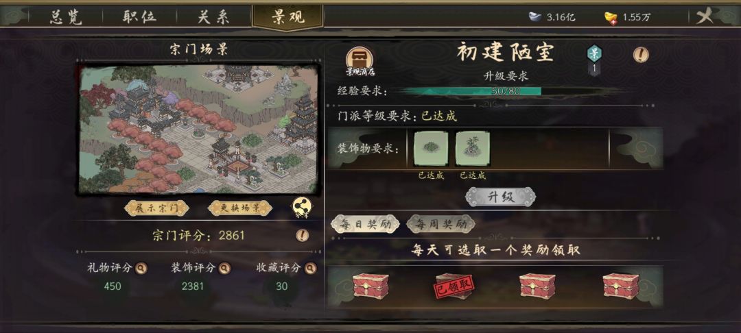 新更新了一些建筑,可以更好的建设自己的门派了呢!!!就是我的审美一般哈哈哈哈,感觉这次更新了很多好玩的