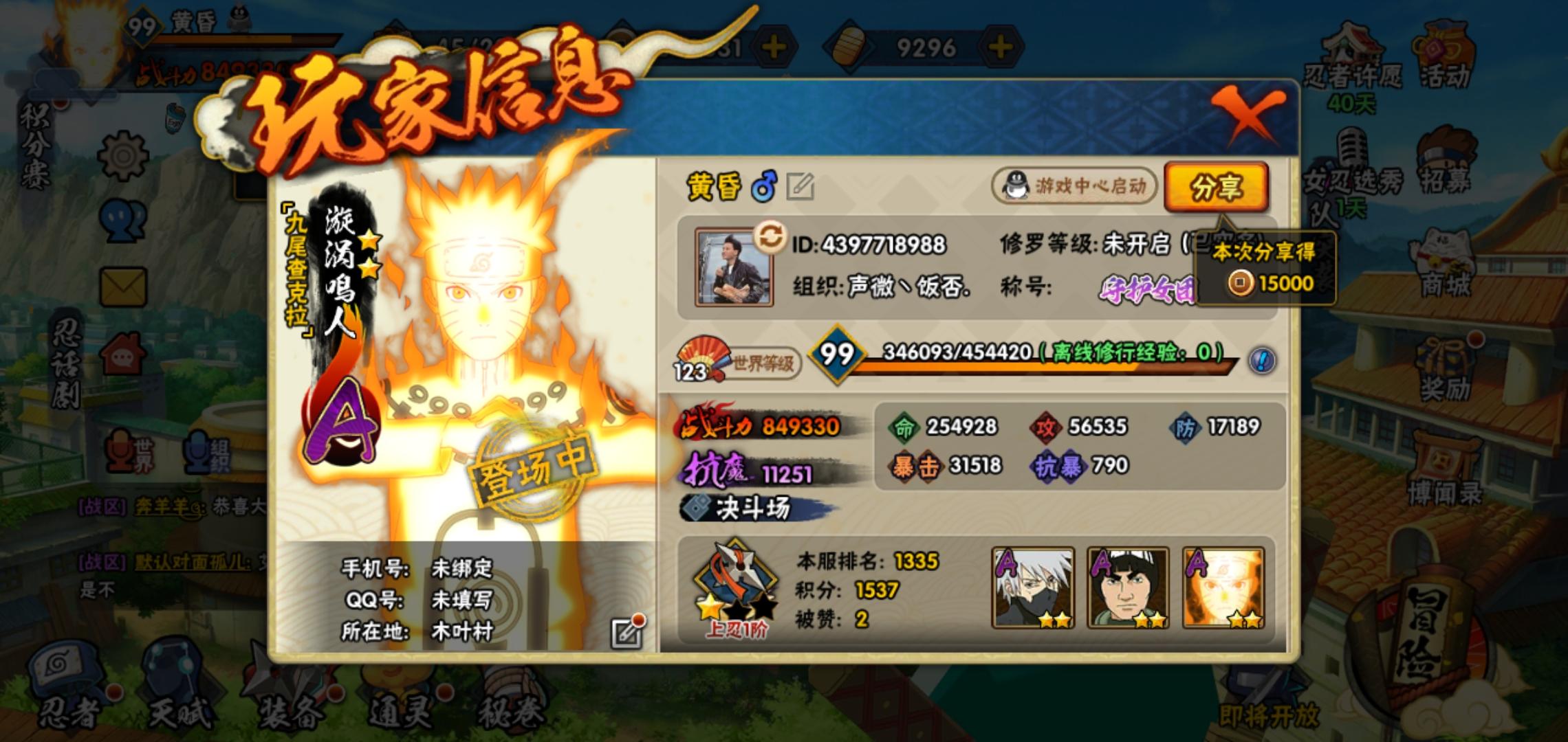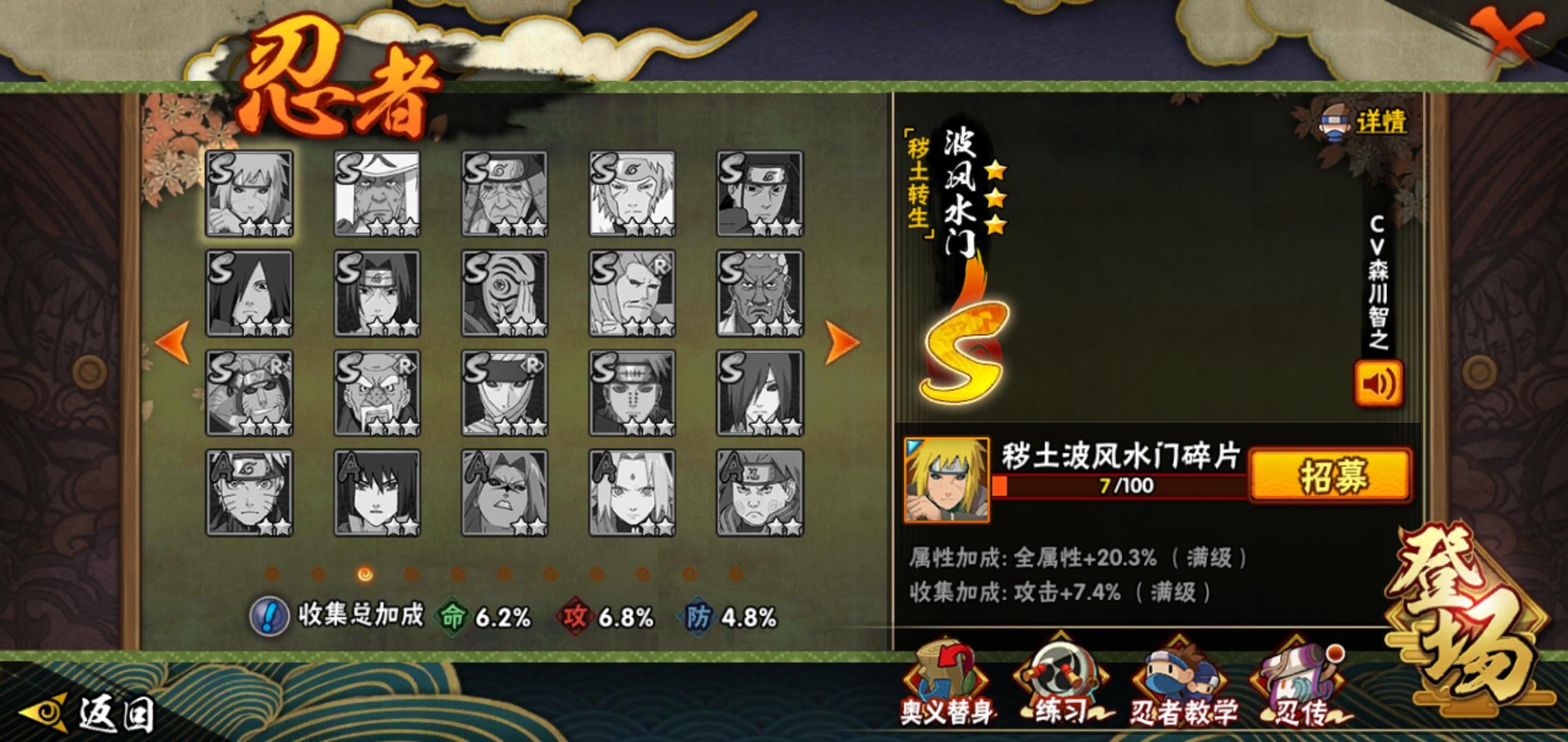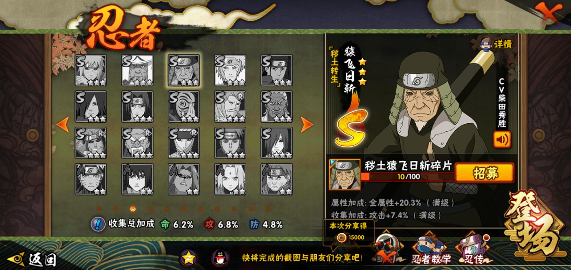 我这是个回归号,以前玩一天就懒得玩了,因为没有喜欢的人物,,这次回归了25天左右吧,从头玩了玩,战力估计跟不上了,,副本都打不过去,,因为金鸣回归的,喜欢鸣人,虽然不厉害哈哈哈哈哈。但是有点动力了。还有35片纲手。16片班,7片四代。