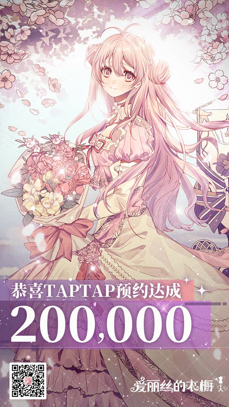 《爱丽丝的衣橱》TapTap20w预约达成,感谢每一位莳花人的支持!Thanks♪(・ω・)ノ
