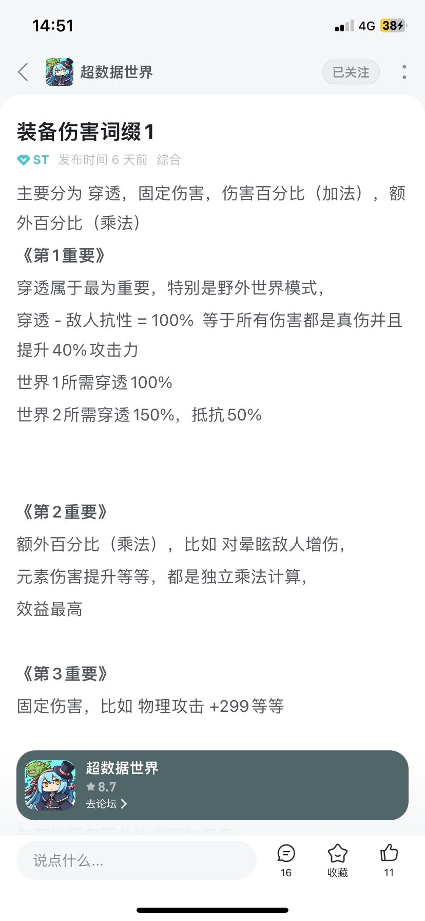 重点在于穿透和攻速,前者可以造成真伤,溢出会有额外增伤,哪怕攻击很低也能刮死boos,而攻速可以更快的蓄力