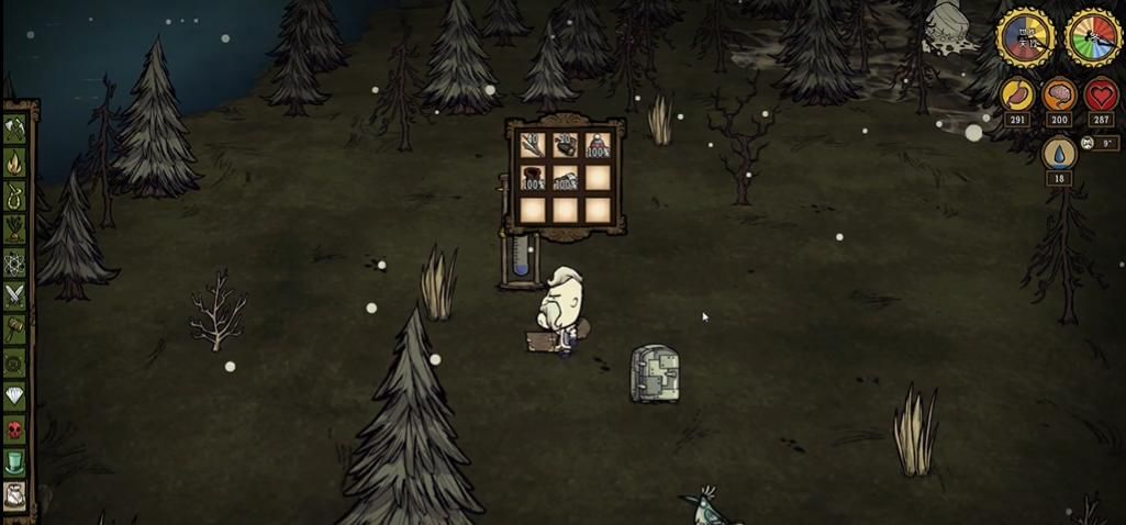在玩家初期在野外进行地图探索时,可能会碰到一个木箱子旁边有一个温度计加一个冰箱,千万不要打开那个木箱。打开木箱的一瞬间,地图就像是进入了侏罗纪世界一样,瞬间变成寒冬,没有食物储备的玩家,可以当场猝死了,这样的环境还能活多久呢?