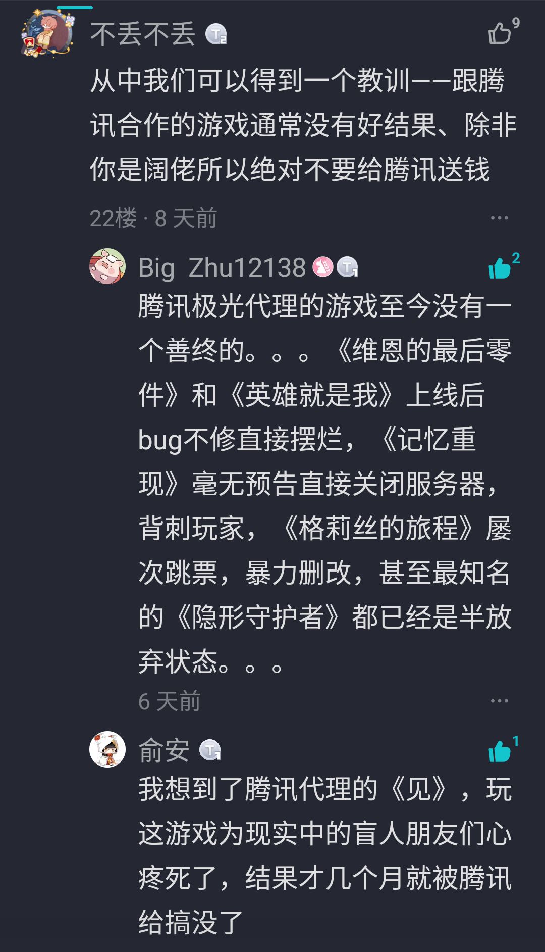 腾讯魔怔人?因为腾讯不代理了就来评论区恶心人?如今这游戏搞成这样不就是腾讯祸害的吗?你收到了损失应该去声讨腾讯而不是怪罪独立游戏。