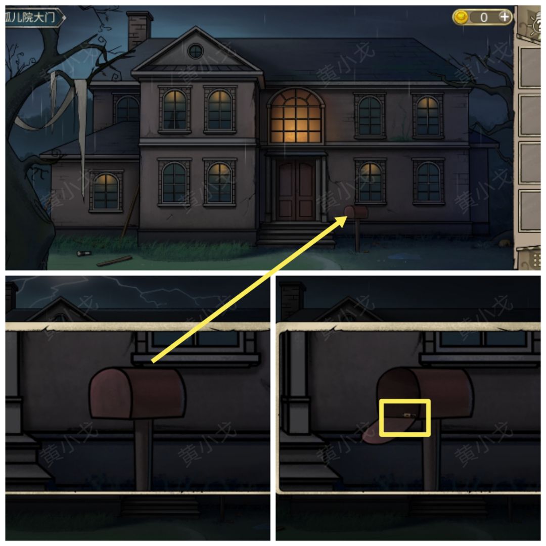 1.(孤儿院大门)点击打开邮筒,获得【电池】