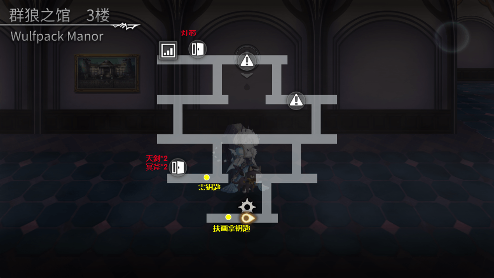 3楼:上方那灯芯,下方扶画拿钥匙,到中下左侧拿天剑和冥斧的书