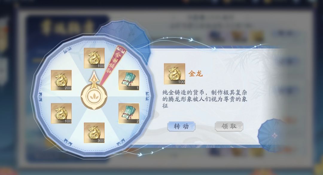 1:幸运转盘,完全靠运气,最多可拿700金龙+3绿票