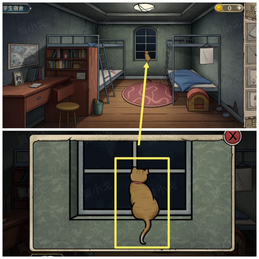 14.(学生宿舍)点击窗户,获得【猫】