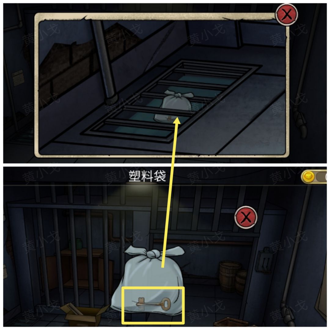 9.【塑料袋】浮上来,点击拾取,在【塑料袋】里获得【十字孔状钥匙】