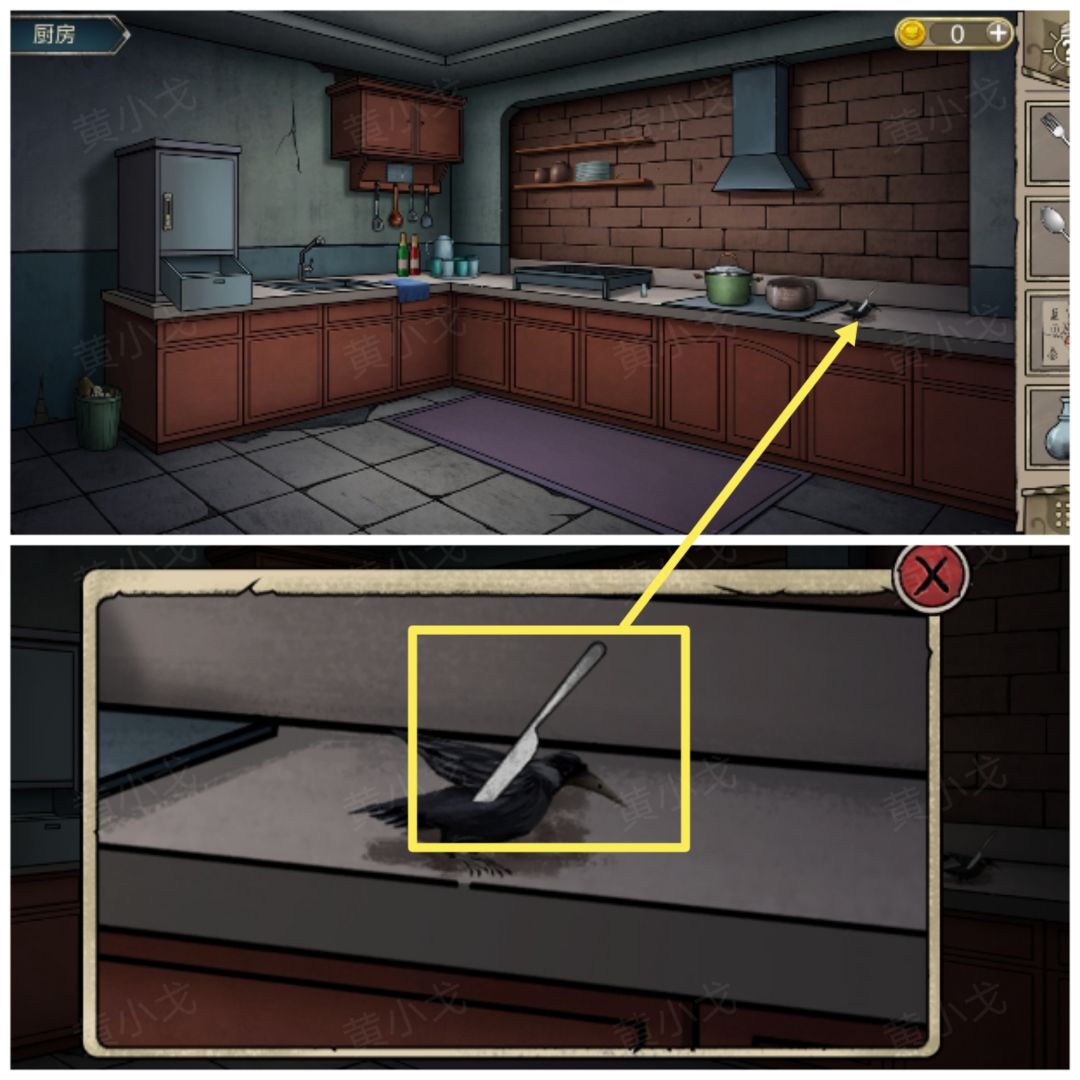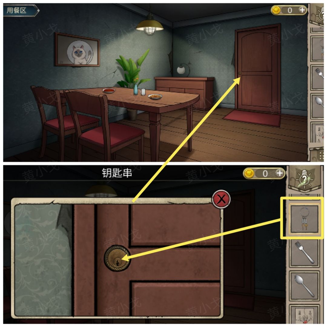 28.点击门,用【钥匙串】上的钥匙打开,进入厨房