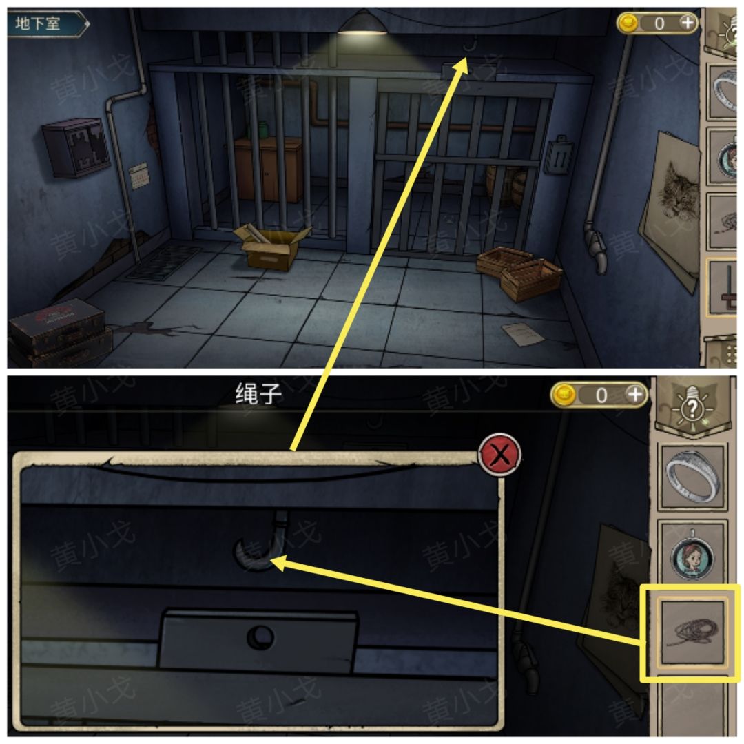 3.点击钩子,系上【绳子】
