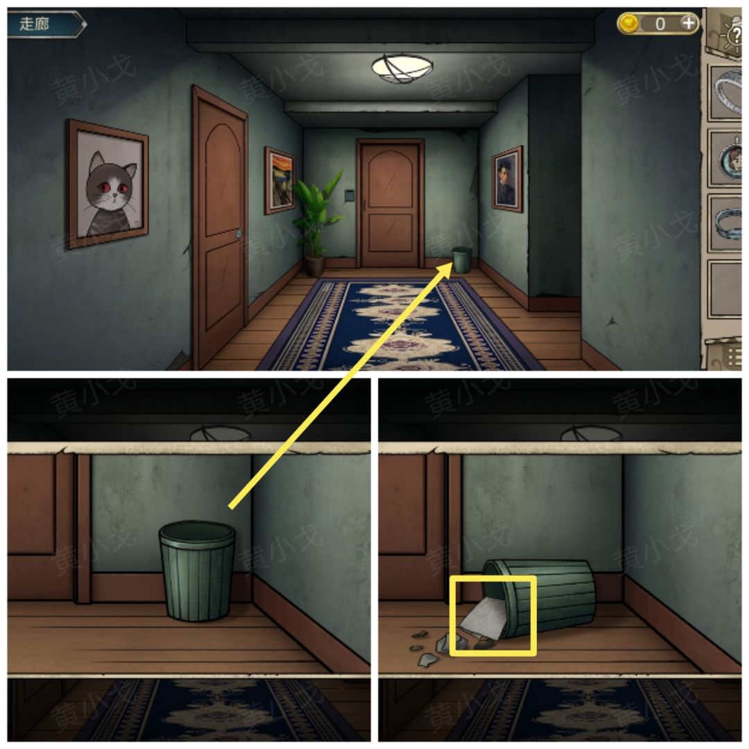 11.(走廊)点击垃圾桶,获得【抹布】