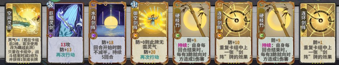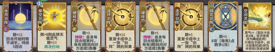硬枝竹这张卡设计得确实妙,使得防能够直接转化为伤害,而不是只能依赖镜花剑阵/土灵流沙等卡牌。在成型后,田防卡组可以应对大部分卡组,仅有少部分卡组需要变阵,如果能有先手变阵都是不需要的,而田的满级道果和魔果可以提供大量修为。