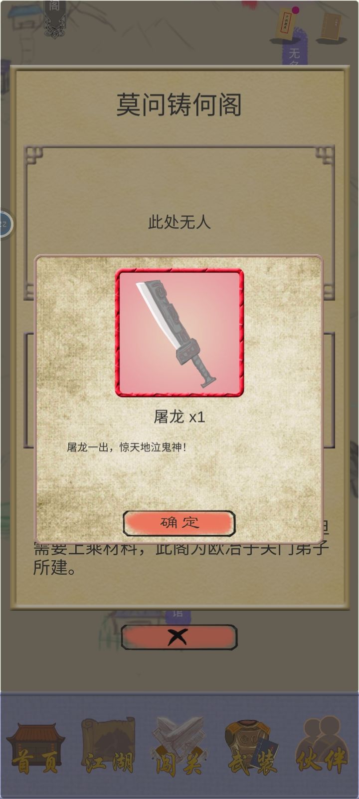 莫问铸何阁这需要18个天外晶石可以得到屠龙。