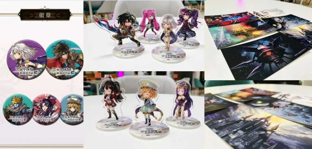徽章、小立牌(大的差不多也这样)、明信片