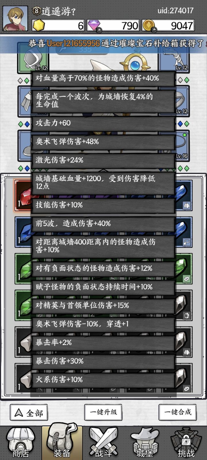 9:石头效果也得看品质,某些关卡可以牺牲一点点输出换防御,升级城墙恢复最少要有3-5个点
