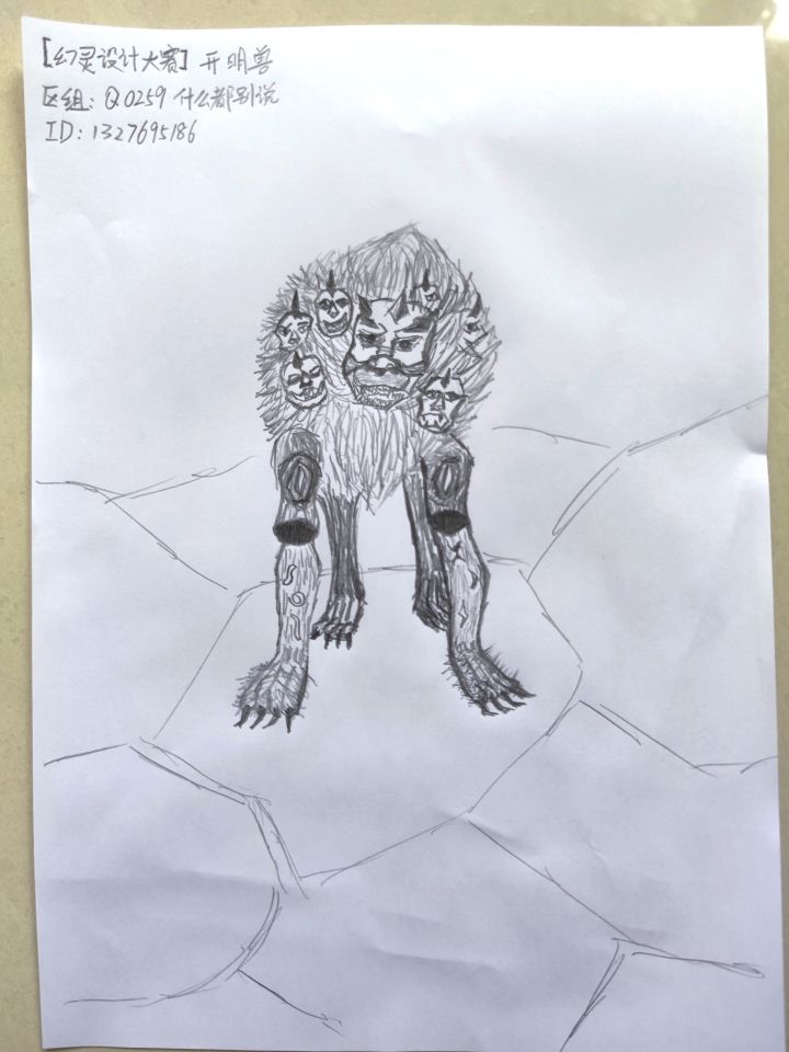设计理念:创作灵感来源于仙剑四四大神兽之一:开明兽。山海经中开明兽描写为九头、人面、虎身。技能设计:开明兽随机使用6-9个头向对方随机侠客造成随机属性(风雷水火土)伤害,每次造成对应属性易伤。己方侠客对具有相同属性易伤的目标造成伤害时,消耗一层易伤并使伤害提高30%。