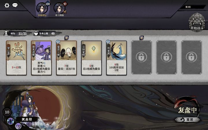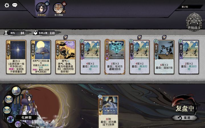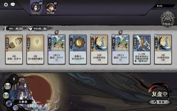 换牌思路:元婴前小d,主要是在化神阶段大量换牌。一般11轮上化神。