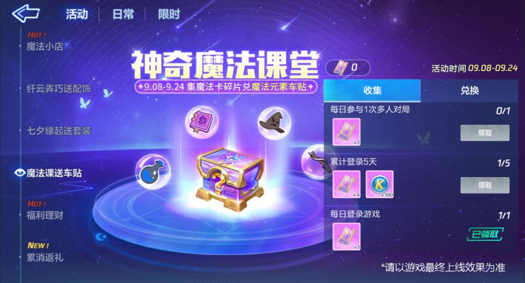 魔法小课堂开课啦,大家快快坐好,可不要带错药水和巫师帽噢~9月9日起,魔法课送车贴活动开启,完成任务即可领取魔法元素车贴盲盒,圆满你的魔法世界!