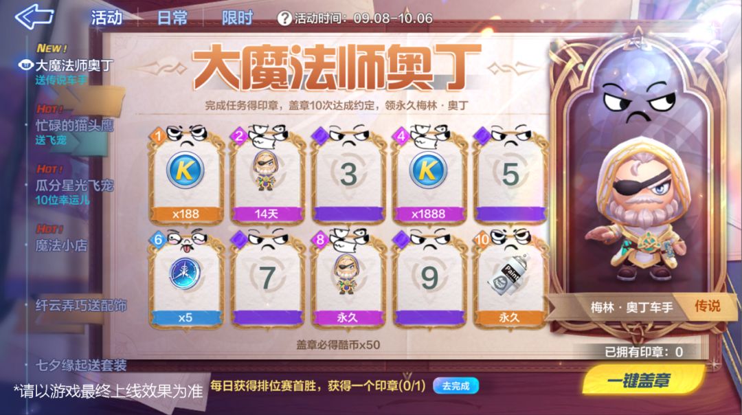 午夜亚瑟王国的钟声敲响,除了忙碌的信使猫头鹰,还有大魔法师奥丁未眠,守护着巨大的王国~9月8日,大魔法师奥丁活动开启,完成活动即可领取全新传说车手【梅林·奥丁】!更可获得全新专属喷漆,感受最强魔法师的威严!